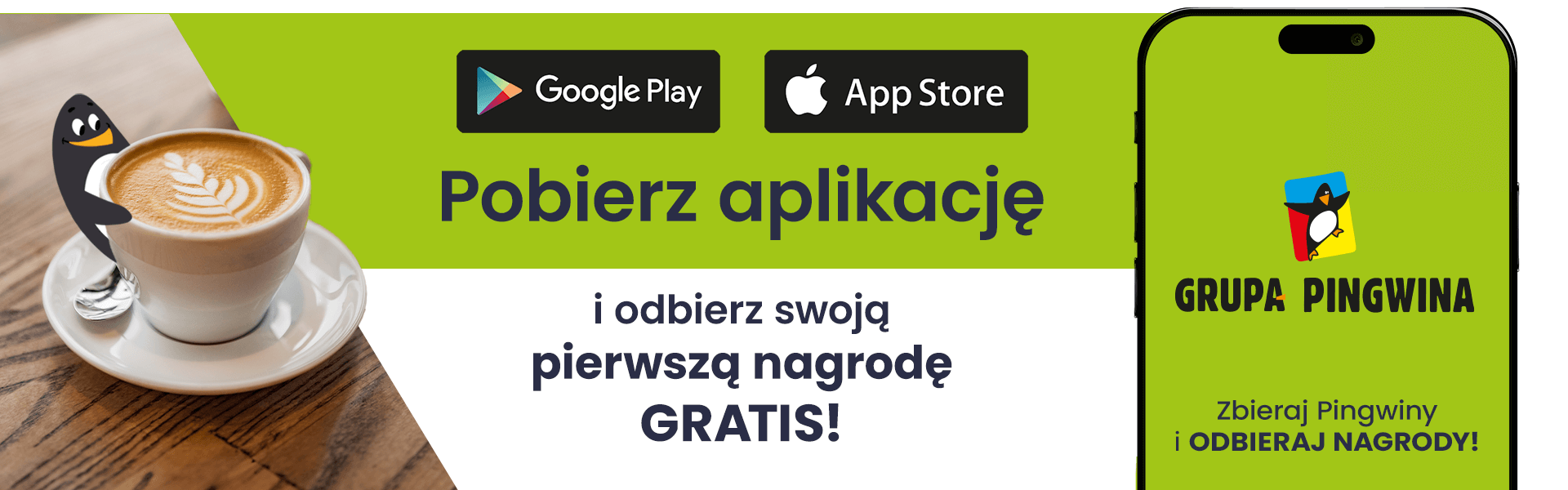 Przejdź do aplikacji na stronie grupapingwina.pl/aplikacja lub pobierz ją w App Store i Google Play,