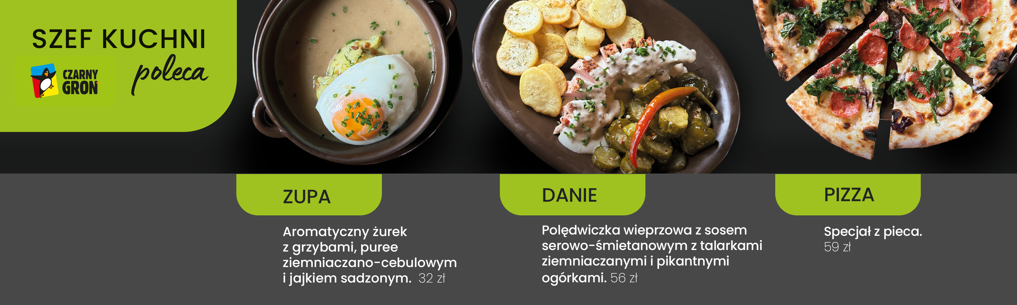 Witamy w Oberży Czarny Groń! Wybierasz się do nas na Szubienicę, czy też po raz kolejny wpadasz na ulubioną michę pierogów? Bez względu na to, co wybierzesz możesz być pewny, że dostaniesz pyszne danie, stworzone z produktów wysokiej jakości, pozyskiwanych lokalnie. Dania o charakterystycznych nietuzinkowych nazwach, tworzymy na bazie lokalnej tradycji. Odwiedź nas, zasiądź z rodziną i przyjaciółmi do wspólnej uczty i delektuj się chwilą z bliskimi w otoczeniu gór.