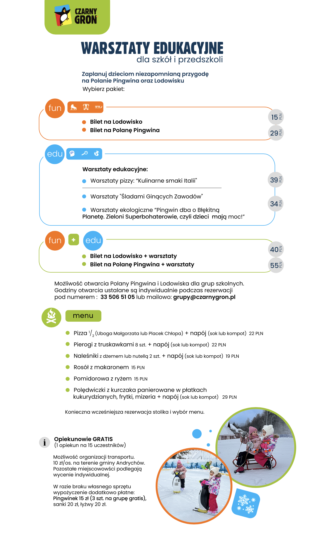 Szukasz pomysłu na wyjątkową wycieczkę szkolną lub wyjazd integracyjny dla przedszkola? Zabierz dzieci do Magicznej Osady w Czarnym Groniu – malowniczego parku edukacyjno-rekreacyjnego położonego w sercu Beskidu Małego, w województwie małopolskim koło Andrychowa - miejsca, gdzie edukacja spotyka się z przygodą!. To idealne miejsce, by połączyć naukę przez zabawę, aktywność na świeżym powietrzu i kontakt z przyrodą.